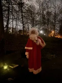 Wir haben zusammen drei Lieder gesungen und dann haben wir den Samichlaus gerufen! Plötzlich hörten wir ein Glöckchen… und da! Wir sehen ihn kommen!